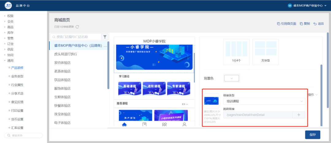 05 导购助手增加培训课程链接类型 首页点击对应内容跳转到具体的课程中 既丰富首页装修多样化 又可快速查看培训课程