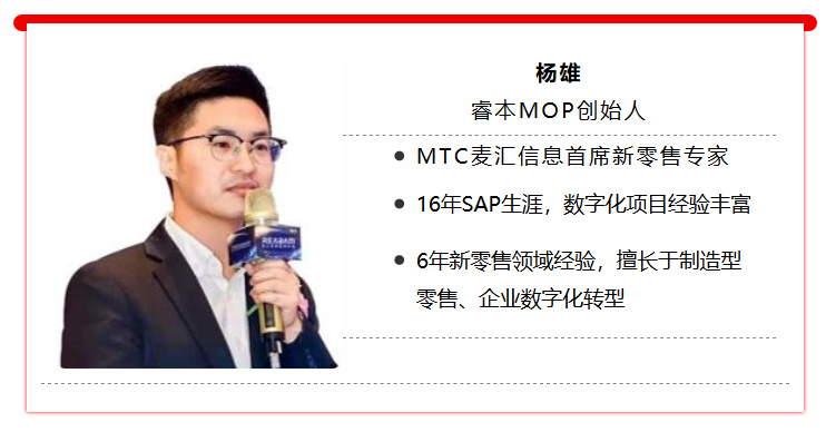 首席新零售专家——杨雄先生给我们带来主题为复工复产「制造型新零售」崛起的公开课讲座。现在就让我们一起跟随杨雄先生站在未来商业模式的角度,探究在新零售这个领域企业如何借助数字化的力量突破难关,共创辉煌。