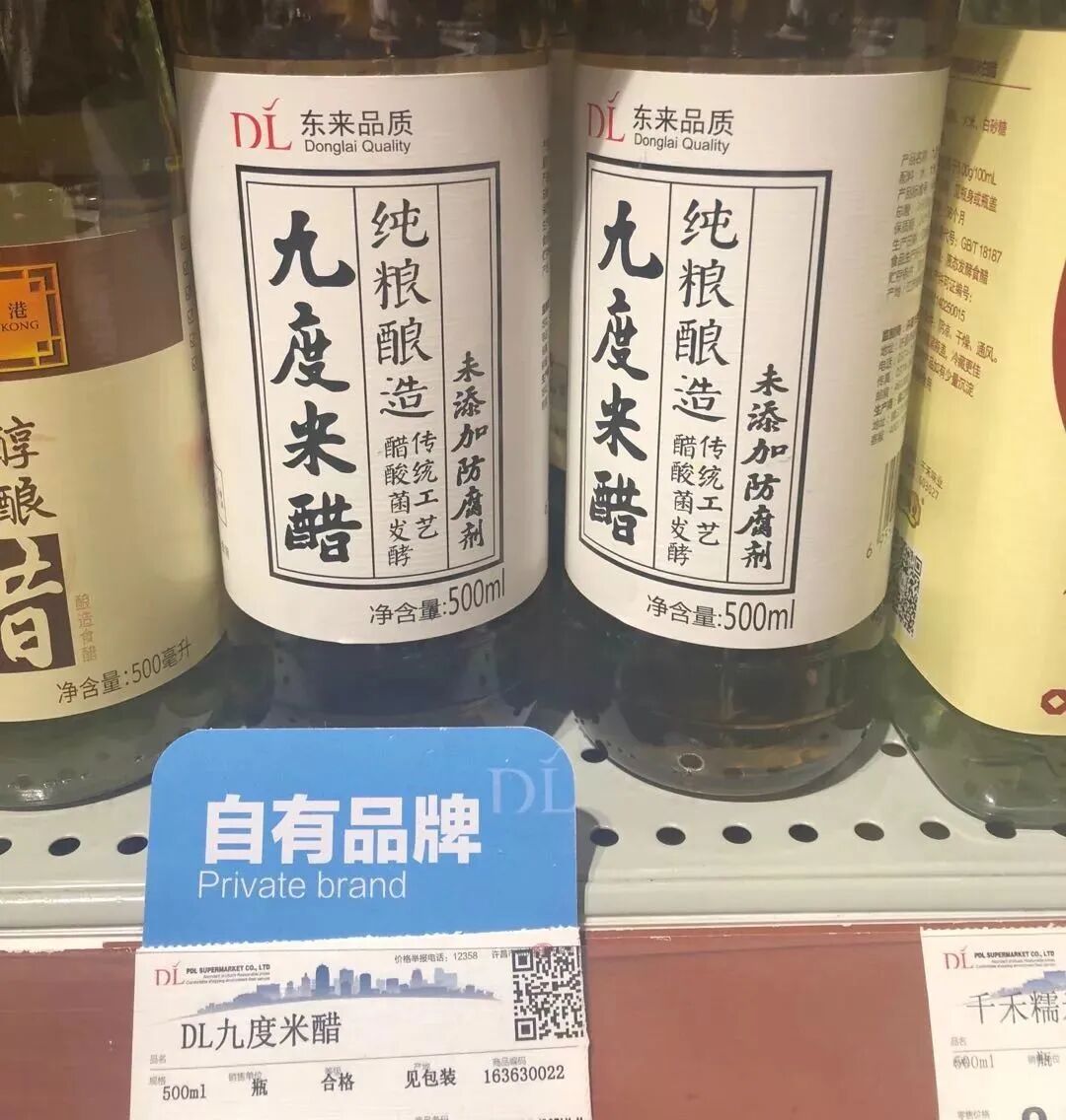 很多品类上都有自有品牌,醋、袜子、毛巾、拖鞋、垃圾袋、纸杯等,从管理到销售很规范,自有商品制作工艺非常高,如戚风蛋糕、法棍面包等。
