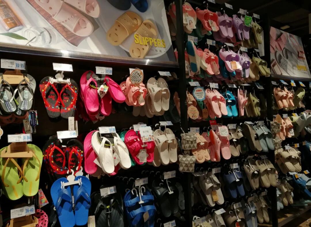 拖鞋价格带为15.9元/双-59元/双,有五六个品种,从浴室拖鞋到沙滩拖鞋都有,功能齐全。