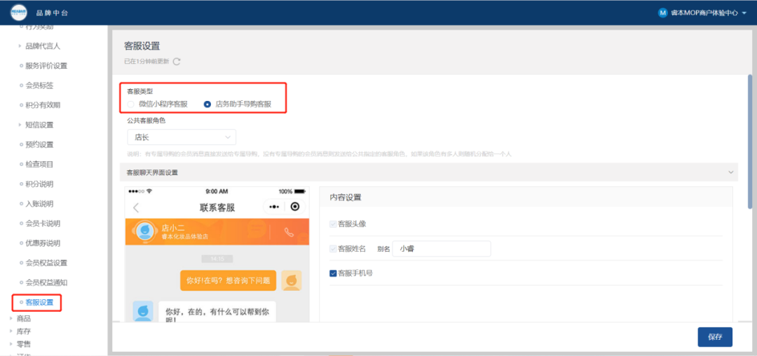 完善了这个场景。品牌中台、店务助手、会员商城,都可以实现客服聊天;实现专属导购与会员一对一的及时沟通及服务。