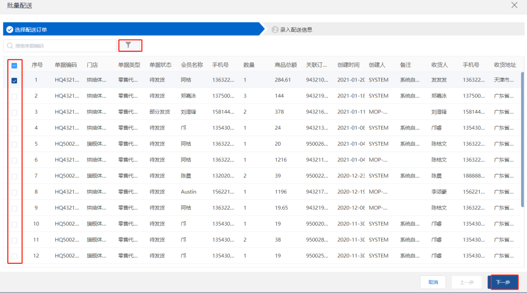 如何使用“批量配送”功能? 场景一:门店批量配送 门店快递配送的订单商品由门店发货配送。