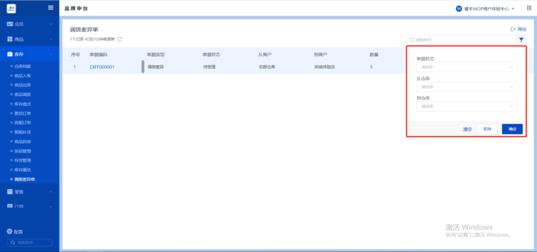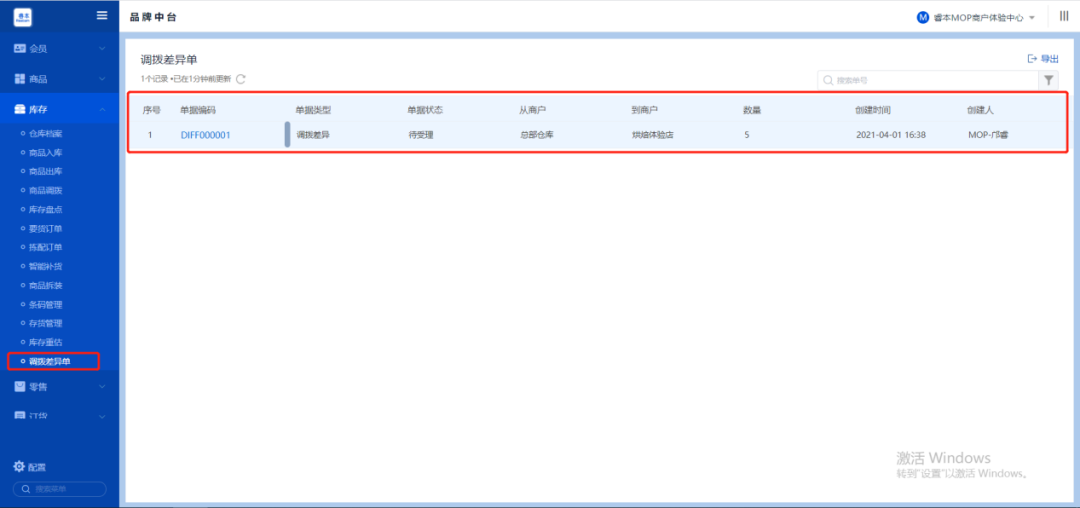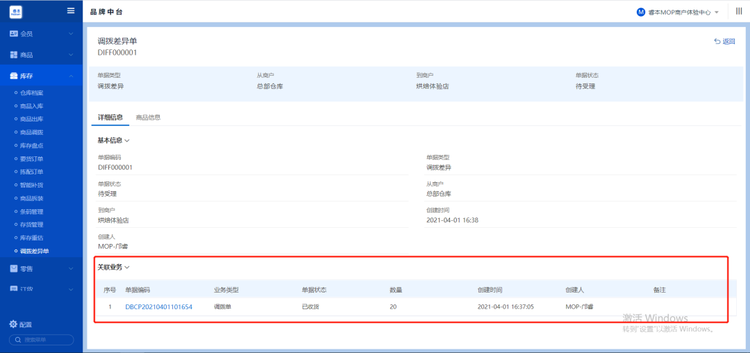 06 新增调拨差异单模块 当收货完成时,调拨收货数量少于发货数量 系统生成对应的差异单 支持查看及受理