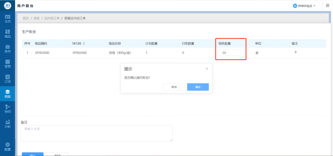 17 店内加工单支持修改原料数量 店内加工收货时可以填写实际消耗原料数量 方便后期数据核对和查看