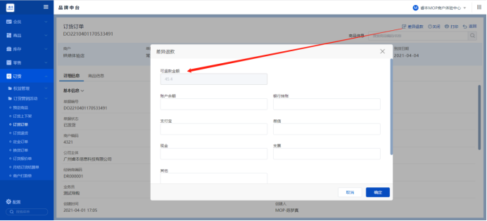 12 订货订单支持退回差异金额 当发货数量小于订货数量时 可支持退回差异金额