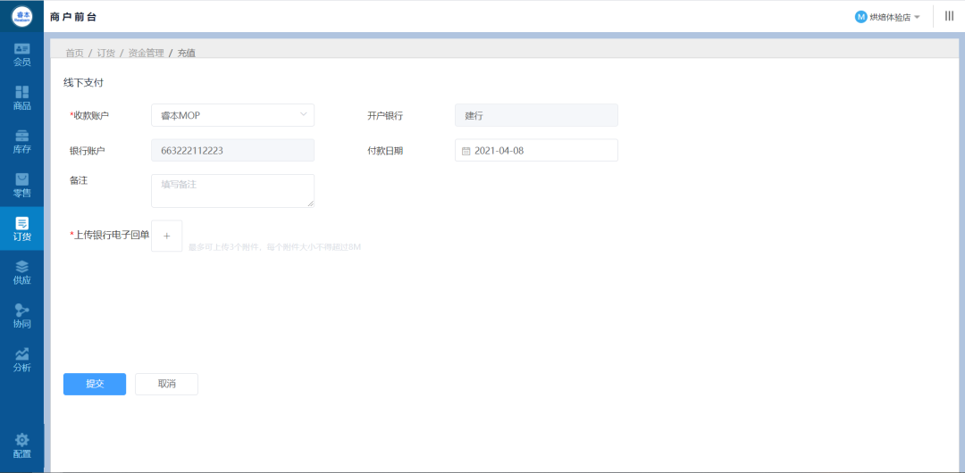08 线下打款支持带出默认收款账户 订货线下打款可设置默认收款账户 商户订货使用线下打款支付方式可带出默认收款账户