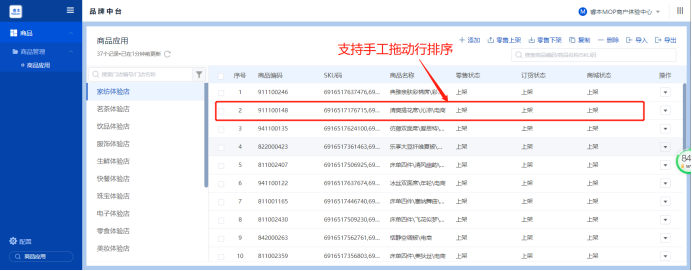 03 商户体验优化 商家可根据商品显示优先级手工拖动排序方便操作 订货退货单列表把原来的金额改为"应退金额" 并且增加字段"实退金额"