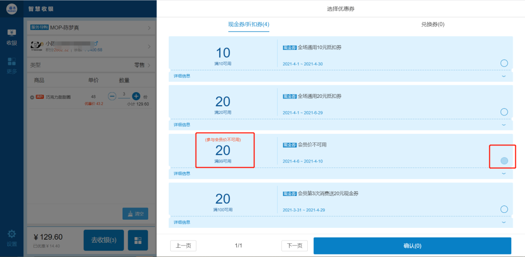 02 零售优惠券新增“参与会员价不可以”限制 会员价和零售优惠券同时使用时 只能用使用一个,不能同时使用 既能保障商家权益又能吸引新客户消费