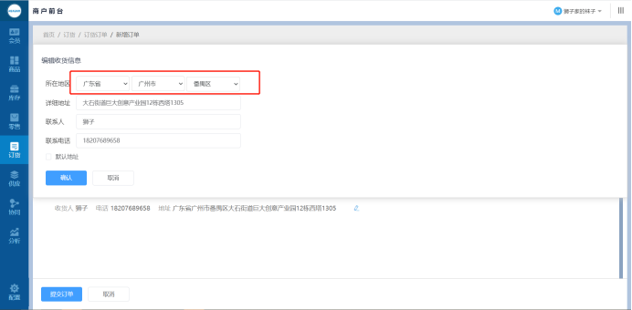 14 订货订单支持修改收货地址的省市区 客户下单填写收货地址时支持修改省市区 便于客户更新收货地址