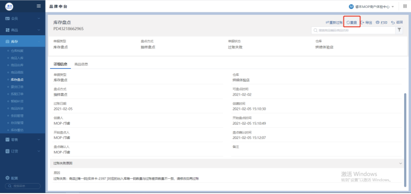 07 库存盘点过账优化 盘点过账失败后会显示过账失败原因 且过账失败状态的盘点单详情增加"重盘"操作按钮