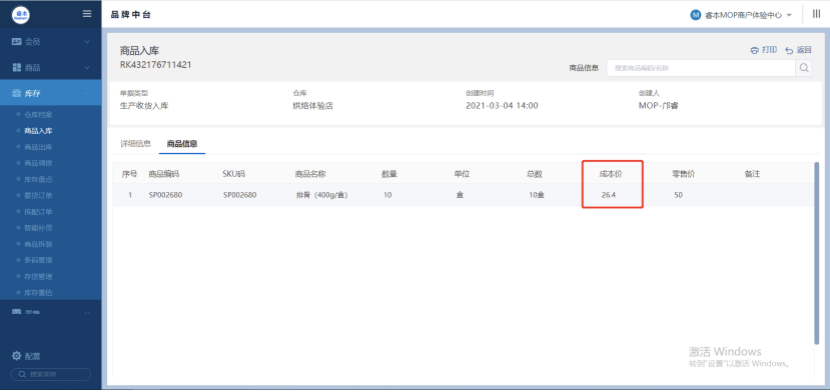11 加工成品入库单成本计算方式优化 手工类型的生产bom,做店内加工单时,所生产的成品入库单 如果成品是按移动平均计算成本。 则成本的计算公式优化为:成品的成本=子物料成本总和/成品数量