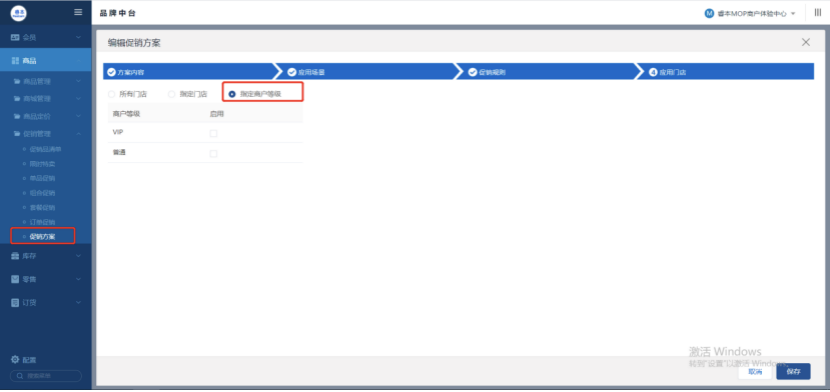 05 促销方案增加指定商户等级设置 新增按指定商户等级应用促销方案 对于某些品牌如果是用商户等级作为划分条件的话 应用促销方案时可选择按指定门店等级设置