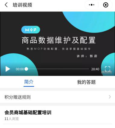 04 导购助手支持浏览课程视频赠送积分 导购浏览课程视频后赠送相应的积分 激励导购学习 提高导购积极性