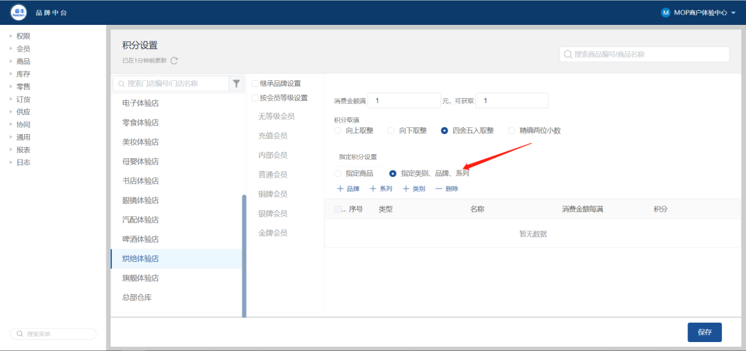 05 积分设置支持按类别/品牌/系列设置积分 商家可按照多种方式设置积分获取规则 提高配置效率