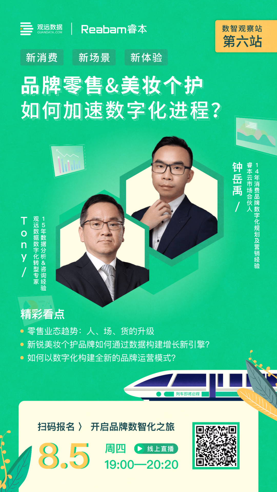 直播预告|品牌运营VS数据驱动,新消费品牌如何反内卷、赢增长?发表时间:2021-07-30 18:33 ![]() 得益于“消费数字新基建”的快速推进、内容生态的创新与完善、消费需求细分化三大关键因素的相互循环增强,新锐品牌在近几年迎来了全面爆发,在巨头林立的白热化市场逆势突围:元气森林、三顿半、NEIWAI内外、奈雪的茶等品牌迅速占领细分消费赛道,有效抢占用户心智。 其中,美妆个护是新消费赛道上最火热、成长最飞速的赛道之一:完美日记成立仅4年,母公司逸仙电商便挂牌上市;花西子在短短三年间,完成了超过40亿的销售额度;薇诺娜母公司贝泰妮上市收获千亿市值......而摇滚动物园、纽西之谜、亲爱男友等品牌通过聚焦特定细分品类与场景,依靠产品功效、创意、颜值,通过淘宝直播、小红书、抖音等渠道,起势极快,赛道热潮涌动。 然而,大量新品牌的涌入和出现也意味着愈加严苛的竞争环境,面对水涨船高的营销费用、不断同质化的产品与品类竞争,大多数新锐品牌正在面临「流量大、盈利难」的困局,若想实现从1到10,从10到∞的突破,必须要打破在产品、创意、营销等方面的单点能力,构建以品牌、产品和用户体验为核心的的快速迭代和数字化运营能力。 如果说,新锐品牌崛起是中国未来5-10年里最确定性机会,那数字化就是新消费品牌成为下一个超级品牌最确定性的增长力—— 人货场升级下,全新的品牌运营模式如何构建? 如何准确感知对市场、消费者的喜好? 如何在“Z世代”追捧的美妆护肤赛道中赢得先机? 如何用数字化降低成本、提高效率? 如何把握「用数据驱动零售智能决策」的核心能力? 8月5日19:00-20:20,观远数据联合睿本云,开启数智观察站·第六站直播《新消费、新场景、新体验:「品牌零售」&「美妆个护」如何加速数字化进程?》,从「人货场升级趋势」谈起,讨论全新的品牌运营模式如何构建,并透过数据视角,剖析新锐美妆个护品牌如何通过数据构建增长新引擎。 精彩预告 ![]() 人、场、货升级下, 全新的品牌运营模式如何构建? 主讲人:钟岳禹 睿本云市场合伙人,14年消费品牌数字化规划及营销经验,聚焦品牌定位、市场营销、零售服务运营。 主讲大纲: